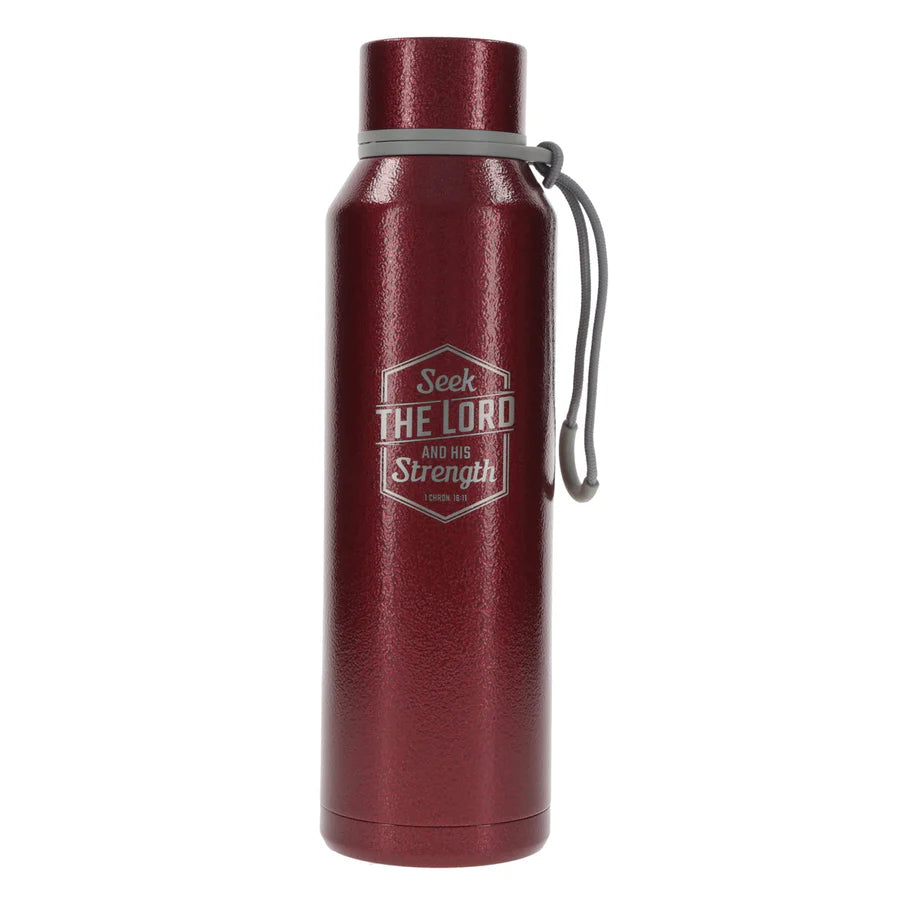 Fill the Seek The Lord and His Strength Red Stainless Steel Water Bottle, and let the message and the water quench your thirst and refresh your body and soul.