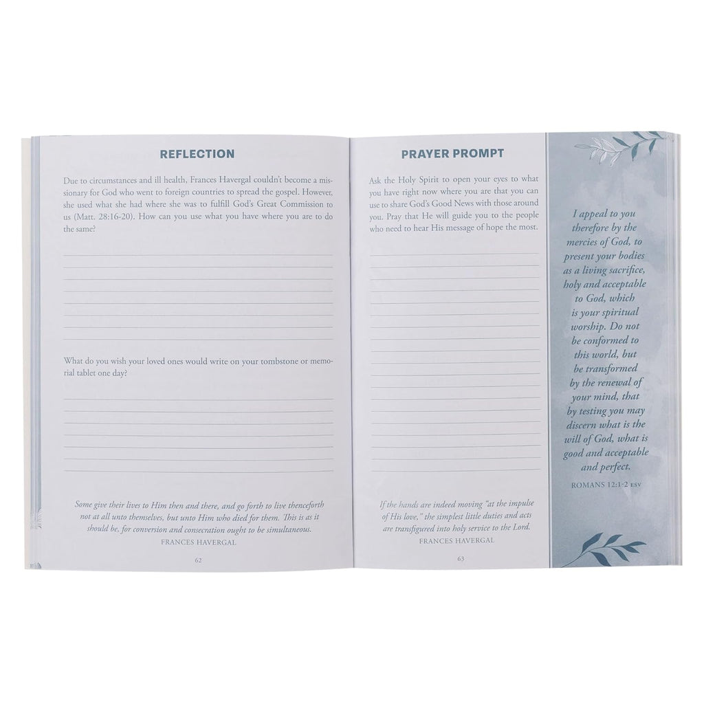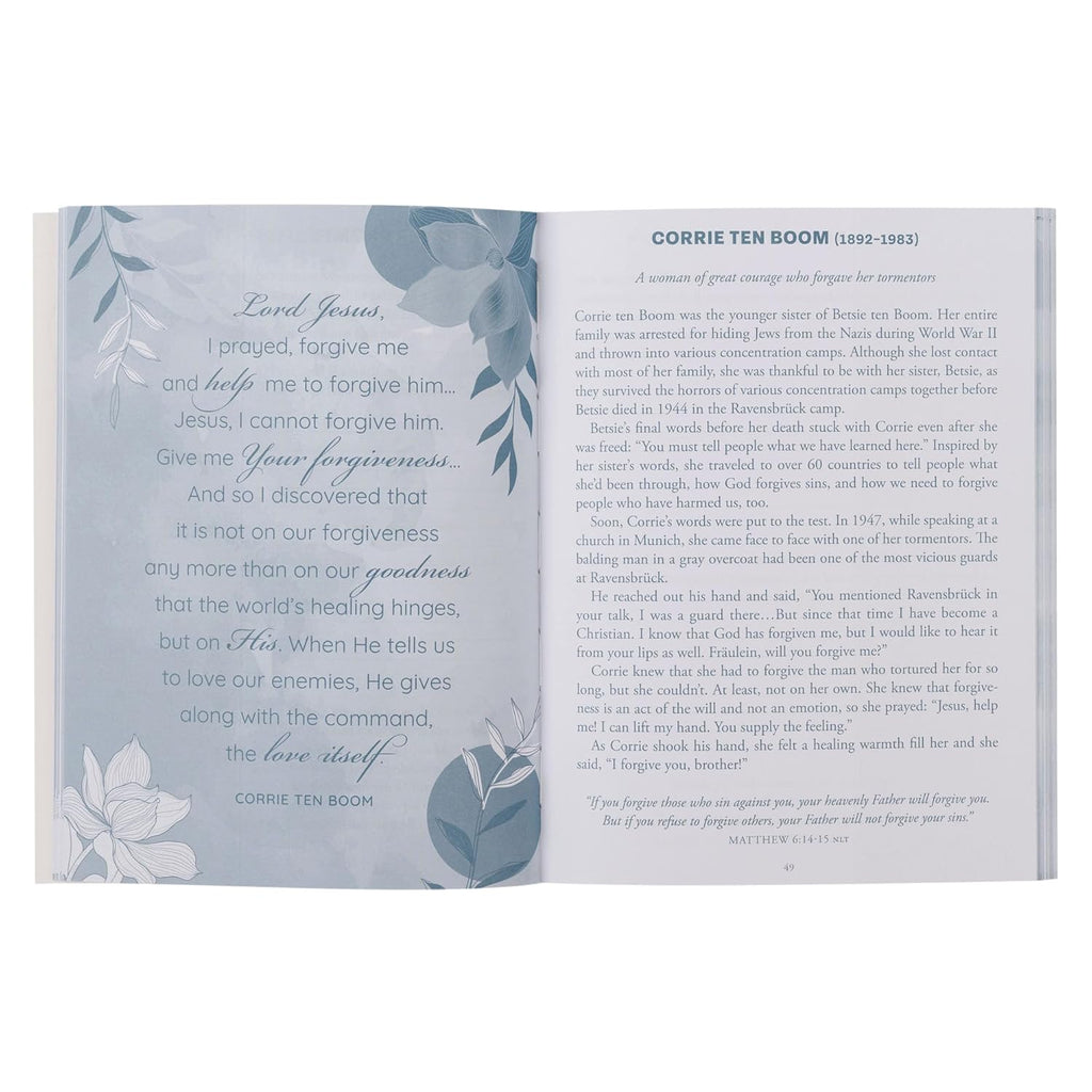 Women of Faith is a prompted prayer journal that follows 30 heroes of the faith to discover the necessity, possibilities and power of prayer. From faith giants like Corrie ten Boom, Suzannah Wesley, Francis R. Havergal and Amy Carmichael, to Bible heroes like Hannah, Mary, Ruth and Esther, this unique journal will help you to revive your prayer life and draw closer to God.