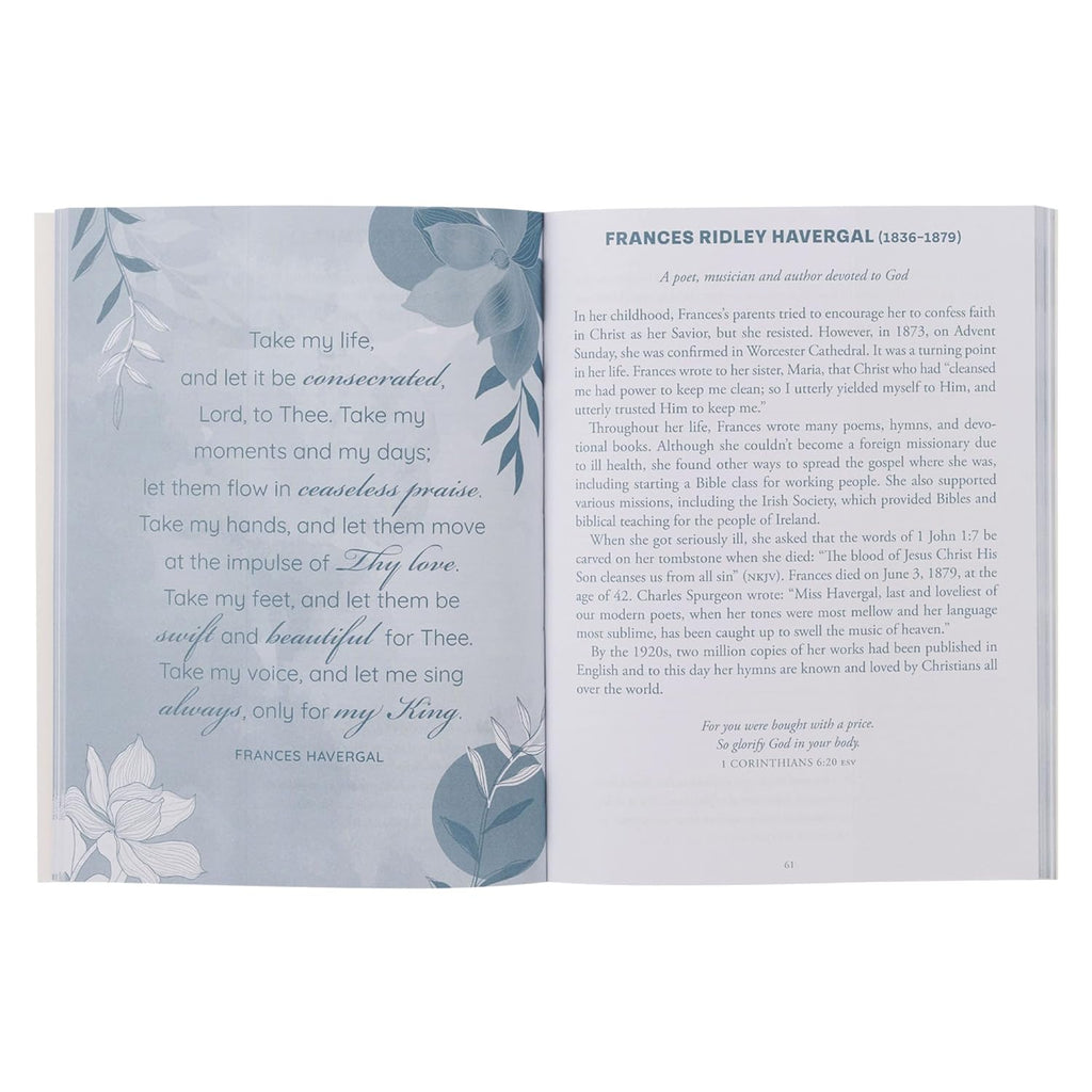 • Offers 30 devotions on women of great faith—including Corrie ten Boom, Suzannah Wesley, Francis R. Havergal and Amy Carmichael, as well as Hannah, Mary, Ruth and Esther from the Bible.